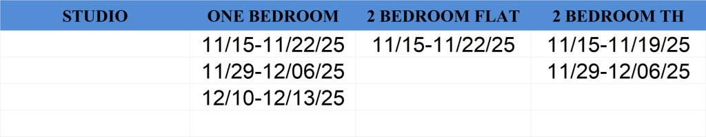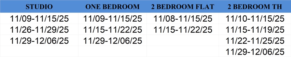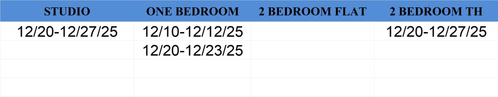 RATES (for Owners and Owner’s guests only): Studio $90/nt, 1 Bedroom $115/nt, 2 Bedroom $145/nt. Effective 1/1/24